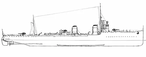 | Bewaffnung: | 4× 102-mm-L/45-Geschütze 2× 76-mm-L/40-Geschütze 2 ×6,5-mm-Colt-Browning-MGs 4× 457-mm-Torpedorohre (2×2) bis 39 Seeminen zuletzt TA 19 1944: |