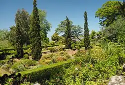 In die weitläufige Parklandschaft sind symmetrisch angelegte Gärten mit opulent angelegten Rabatten eingestreut, auf denen das ganze Jahr über Ziergewächse blühen, darunter viele aus der Kapflora bekannte Arten wie Mittagsblumen, Gazanien, Fackellilien und Schmucklilien. Vor einer viktorianischen Villa, dem Wohnsitz der Eigentümerfamilie, gibt es eine Sammlung von Zuckerbüschen mit Königs-Protea (Protea cynaroides) und Nadelkissen-Protea (Leucospermum cordifolium).[5] Vor dem Teehaus (Einkehrmöglichkeit) schaut man auf zwei kleine Seerosenbecken, des Weiteren gibt es einen Rosengarten.