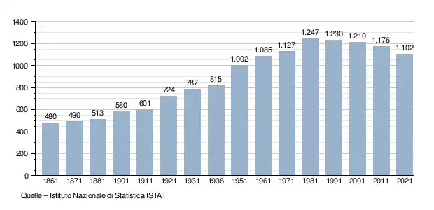 - ↑ Bilancio demografico e popolazione residente per sesso al 31 dicembre 2024. ISTAT. (Bevölkerungsstatistiken des Istituto Nazionale di Statistica, Stand 31. Dezember 2024).