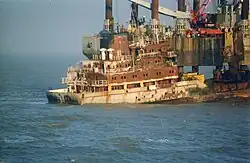 ![]() Die Pallas mit der niederländischen Bergungsplattform Barbara