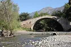 An der auch Venezianische Brücke genannten Großen Brücke (diese wurde 1852 unter der türkischen Besetzung errichtet) beginnt an einer Taverne ein knapp dreistündiger beschaulicher Rundwanderweg.[10] Dieser führt in einiger Entfernung zunächst ein Stück östlich des Megalopotamos eine Anhöhe hinauf und von dort hinab zum Strand. Der Rückweg zur Brücke folgt dann einem aussichtsreichen Pfad hoch über dem Westufer, von dem sich spektakuläre Tiefblicke in die Schlucht ergeben.