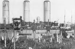 | Antrieb: | 2 stehende Dreizylinder-Dreifachverbunddampfmaschinen 6 Zylinderkessel 2 Schrauben 8.500 PS |