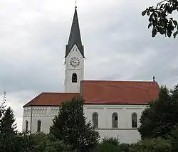 Westlich von Pang liegt das beschauliche Kirchdorf Westerndorf am Wasen mit der barocken Filial- und Wallfahrtskirche St. Johann Baptist und Heilig Kreuz.
