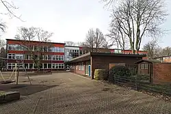 Zum Schulgelände gehören das seit 1961 bestehende Schulgebäude, ein Pausenhof, eine Turnhalle, ein Lehrschwimmbecken und ein – von den Kindern erbautes – Naturgebiet mit Teich, Trockenmauer, Kräuterspirale und Sumpfgelände. Im selben Schulkomplex befindet sich auch die Erich-Kästner-Grundschule, eine Sonderschule für Sprachbehinderte.