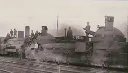 | Der Panzertriebwagen hinter einer Dampflokomotive 1918 | |