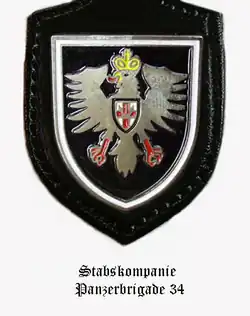Die Blasonierung des Verbandsabzeichens für den Dienstanzug der Angehörigen der Panzerbrigade 34 lautete:
