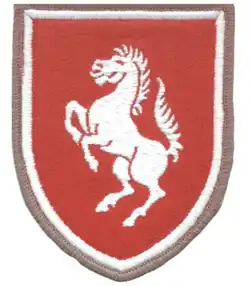 Das Verbandsabzeichen zeigte das Westfalenross. Es ähnelt dem Wappen der preußischen Provinz Westfalen, dessen Wappen später auch Teil des nordrhein-westfälischen Landeswappens wurde, wo die meisten Truppenteile der Division disloziert waren. Die Verbandsabzeichen der Division und der unterstellten Brigaden waren bis auf die Borde identisch. In der Tradition der Preußischen Farbfolge erhielt das Verbandsabzeichen der Panzergrenadierbrigade 19 als „erste“ Brigade[A 2] der Division einen weißen Bord.