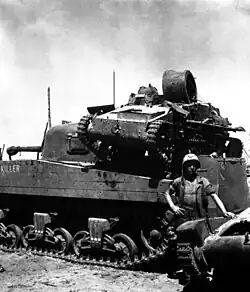 In der US-Army wurden ab Ende der 1950er Jahre die Panzertransporter der Kriegszeit durch 6×6-Sattelzugmaschinen des Typs Mack M123 abgelöst, als Sattelauflieger diente der jetzt auf 50 Tonnen Nutzlast verstärkte Fruehauf M15A2.[53] Die Produktion des Mack M123 lief von Mitte der 1950er bis Ende der 1970er Jahre.[54] Diese Sattelzugmaschine wurde ab 1978 allmählich durch den 8×6-Sattelschlepper Oshkosh M911 ersetzt, von dem 1200 Stück zum Transport des Kampfpanzers M1 Abrams bestellt wurden.[55][56]