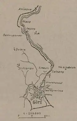 Einige Tage später wurde, nach Rücksprache mit dem Generalstabschef des 16. Korps Oberst Graf, der Abschnitt vor der 18. Infanterietruppendivision ausgekundschaftet. Dabei stellte man fest, dass die linke Flanke der 1. Gebirgsbrigade unter schwerem Maschinengewehr- und Infanteriefeuer aus dem Babintunnel nahe der Gemeinde Kanal ob Soči litt. Durch die Bauart und Lage des Tunnels war es nicht möglich diesen mit direkten oder indirekten Artilleriefeuer zu treffen. Ein Angriff aus Richtung Görz wurde ebenfalls für unmöglich gehalten, da man zwischen dem Isonzo rechts und steilen Felswänden links eingeengt wurde und das Gebiet vor dem Tunnel durch italienische Truppen gehalten wurde. Zusätzlich wurde der Tunnel in Richtung Görz durch eine starke Barrikade versperrt.[1][3][4]