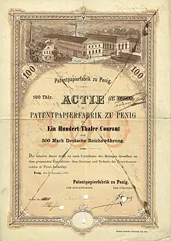 Gründeraktie der Patentpapierfabrik zu Penig vom 15. November 1872