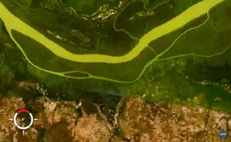 ![]() Der Gambia fließt hier im Bildausschnitt in westlicher Richtung. | ||