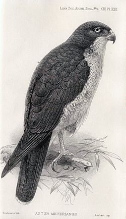 - ↑ a b c d S. Debus, G. M. Kirwan und J. S. Marks: Meyer's Goshawk meyerianus, version 1.0. In: J. Del Hoyo, A. Elliott, J. Sargatal, D. A. Christie und E. De Juana (Herausgeber): Birds of the World, 2020, Cornell Lab of Ornithology, Ithaca, NY, USA. Accipiter meyerianus