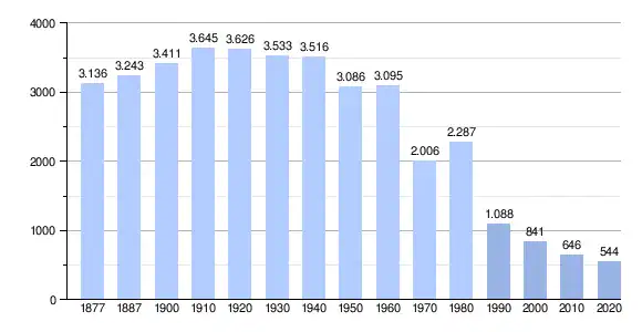 Durch Fortzug in die umliegenden Städte ist die Bevölkerung seit den 1950er Jahren relativ stetig gesunken.