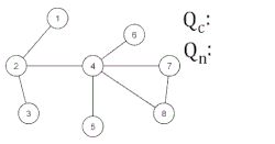 - Anschließend wird der Vektor mit multipliziert, um die Knoten zu erhalten, die im nächsten Schritt erreicht werden. Sei (d. h., Knoten 1 wurde im vorherigen Schritt besucht), gilt , wobei die Eins in der zweiten Komponente darauf hinweist, dass im nächsten Schritt Knoten 2 besucht wird.