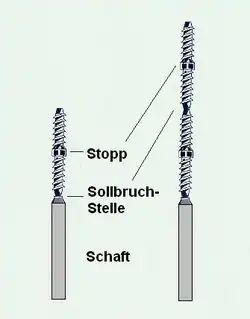 - Ein Bruch des Vorbohrers im Dentin oder der Bruch des Stiftes an einer anderen als der Sollbruchstelle ist unbedenklich und nicht weiter behandlungsbedürftig.