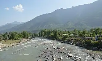 Blick von der Jia Bridge auf den Unterlauf des Parbati | ||