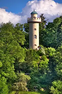 Etwas oberhalb des Südwestufers des Unteren Sees steht unweit der Teufelsbrücke ein Aussichtsturm (1776–1790). Er war ursprünglich als ausgemauerter Holzfachwerkturm errichtet worden, musste aber 1867 wegen Baufälligkeit aus Steinen neu aufgemauert werden. Teile der hölzernen Innentreppe sind noch original erhalten. Seit 2010 wurde die Aussichtsplattform, die Brüstung und die Putzfassade denkmalgerecht rekonstruiert, sodass der Turm heute wieder in gutem Zustand ist und im Rahmen von Führungen besichtigt werden kann.[6]