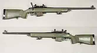 Der Lauf ist freischwingend. Der Verschluss basiert auf dem Mauser System 98.[1][3] Der Schaft besteht aus glasfaserverstärktem Kunststoff und wurde von McMillan Brothers Rifle Company gefertigt[2], weshalb die Waffe äußerlich dem M40 ähnelt.