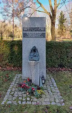 Bei einem Luftangriff der Alliierten 1943 im Wedding kamen 100 Kinder und 20 polnische Frauen zwischen 14 und 21 Jahren ums Leben. Für diese jungen Frauen wurde 2004 der Stein auf Initiative von ehemaligen Kolleginnen aus Łódź errichtet, die ebenfalls Zwangsarbeiter in Berlin waren. Diese Grabfläche in der Abteilung 19 ist unweit des hinteren Eingangs vom S-Bahnhof Raoul-Wallenberg-Straße gelegen.