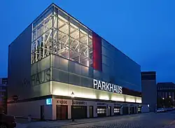 Ein Parkhaus ist ein meist mehrstöckiges Gebäude, in dem sich Stellplätze für Pkw oder Motorräder und seltener für Lkw oder Fahrräder befinden. Parkhäuser werden meistens in größeren Städten gebaut, um den knappen innerstädtischen Raum besser auszunutzen und den Straßenraum von geparkten Autos (sogenanntem ruhendem Verkehr) zu entlasten. Ein Stockwerk eines Parkhauses wird als Parkdeck bezeichnet.[1] Eine Hochgarage ist eine über Rampen erreichbare, nicht zu ebener Erde liegende Garage[2], eine Tiefgarage ist eine Garage unterhalb der Erdoberfläche.
