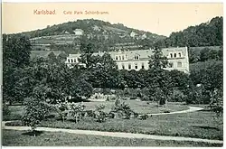 - ↑ Postkarte–Café Schönbrunn, Karlsbad, ca. 1908
