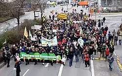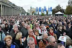 Die Demonstranten werden sowohl von den Veranstaltern als auch von den Medien als sehr heterogen eingeschätzt. An den Demonstrationen beteiligt seien „Bürger aller Schichten und Angehörige aller Milieus“.[21] Der Berliner Protestforscher Dieter Rucht sieht jedoch vor allem die „bürgerliche Mitte überdurchschnittlich vertreten“.[22]