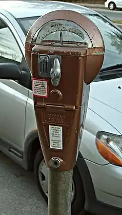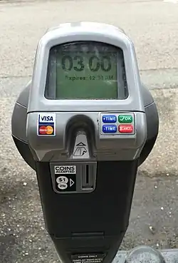 Eine Parkuhr (seltener auch Parkometer[1] genannt) ist eine Säule mit einer mechanischen oder digitalen Uhr, die die verbleibende zulässige Parkzeit anzeigt. Sie ist am Rand eines Parkplatzes aufgestellt. Mit dem Einwurf von Münzen (Parkgroschen) oder neuerdings auch mit dem Versenden einer SMS bezahlt man die Gebühr für eine bestimmte Parkzeit, die dann von der Uhr heruntergezählt wird.