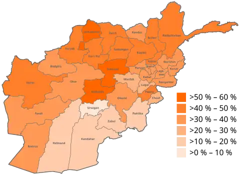 - ↑ a b Voter Registration Statistics from 34 provinces 2018. Wahlkommission Afghanistans, archiviert vom am 20. Oktober 2018; abgerufen am 20. Oktober 2018 (englisch).