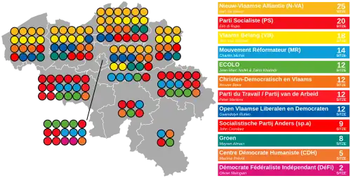 | sp.a, MR, Open Vld, cdH, CD&V, N-VA (Arizona-Koalition)[11] | 77 |