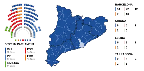 Das Parlament von Katalonien war die zweckbestimmte, einkammrige Legislative der Autonomen Gemeinschaft Kataloniens, die über eine legislative Befugnis in regionalen Angelegenheiten im Sinne der spanischen Verfassung und des katalanischen Autonomiestatuts sowie über die Möglichkeit verfügt, einem Regierungspräsidenten das Vertrauen zu schenken oder es zu entziehen.[1] Die Abstimmung für das Parlament erfolgte auf der Grundlage des allgemeinen Wahlrechts, das alle über achtzehnjährigen Staatsangehörigen umfasste, die in Katalonien registriert waren und in voller Ausübung ihrer politischen Rechte standen.