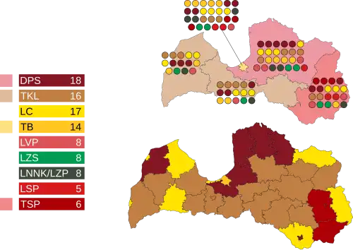 - ↑ a b 6. Saeimas vēlēšanas. Centrālā vēlēšanu komisija (Zentrale Wahlkommission), abgerufen am 7. Oktober 2023 (lettisch).