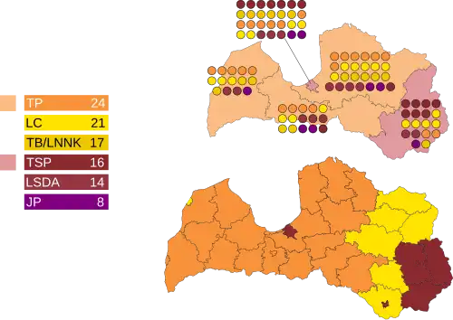 - ↑ a b 7. Saeimas vēlēšanas. Centrālā vēlēšanu komisija (Zentrale Wahlkommission), abgerufen am 7. Oktober 2023 (lettisch).