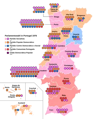 Bei den Wahlen siegte die sozialdemokratische Sozialistische Partei, die damit leicht unter den Ergebnissen von 1975 blieb. Auch der konservativ-liberalen Demokratischen Volkspartei (PPD), die 1976 in Sozialdemokratische Partei (PSD) umbenannt wurde, gelang keine Verbesserung ihres Ergebnisses von 1975. Das rechtskonservative Soziale und Demokratische Zentrum (CDS), das am 2. April gegen die Annahme der aus seiner Sicht „sozialistischen Verfassung“ gestimmt hatte, konnte sein Wahlziel erreichen und stärker als die ebenfalls ihr Wahlergebnis verbessernde Portugiesische Kommunistische Partei (PCP) werden.