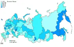 Republik Altai 62,8 % 53,3 % 21,5 % 10,3 % 10,6 % 1,5 % 0,8 % 0,5 % 1,3 %