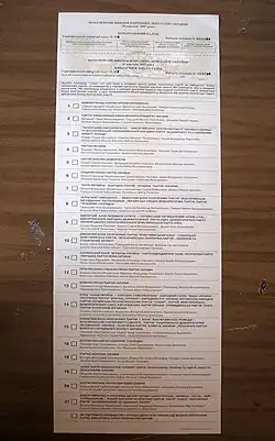 Zur Wahl standen 20 Parteien und Wahlbündnisse: