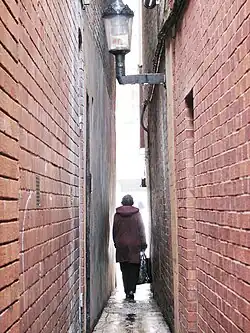 Ursprünglich hieß die Straße Small Lane, was in etwa kleine Gasse bedeutet. Die Bezeichnung war naheliegend, da sie mit 1,20 Meter an der breitesten Stelle und weniger als 64 Zentimetern an der engsten Stelle laut dem Guinness-Buch der Rekorde bis 2007 die schmalste Straße der Welt war.[2] Inzwischen gilt die Spreuerhofstraße im baden-württembergischen Reutlingen als weltweit schmalste Straße.[3] Dabei sind eigentlich beides keine Straßen, im Sinne eines Fahrwegs.