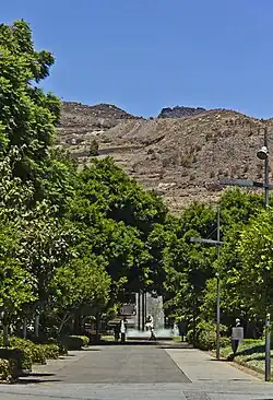 - Santiago García Sanabria, geboren 1880, war Bürgermeister der Stadt Santa Cruz de Tenerife. Während seiner Amtszeit wurde der Park angelegt. Die heutige Anlage des zentralen Denkmals zu seinem Andenken besteht grundsätzlich aus drei Komponenten: 1. Das aus mehreren unterschiedlich großen Quadern bestehende Denkmal. Dieses Denkmal wurde im Jahr 1936 von dem Architekten José Enrique Marrero Regalado entworfen und 1938 errichtet. Der Standort des Denkmals war vor seiner Erschaffung umstritten, bis es eine Einigung auf den Schnittpunkt der Hauptachsen des Parkes gab. 2. Das Portraitrelief des Santiago García Sanabria, die Reliefbilder auf der Ostseite und der Westseite und die Skulptur „La Fecundidad“ („Die Fruchtbarkeit“ bekannt als „La gorda del parque“)[7] erscheinen dem Betrachter heute stilistisch als eine typische Schöpfung aus der Zeit des Frankismus. Sie wurden im Jahr 1936 (vor Beginn des Bürgerkrieges) von dem Künstler Francisco Borges Salas geschaffen. Die Skulptur „Fruchtbarkeit“ wurde zur Zeit der franquistischen Kulturpolitik in einem städtischen Depot eingelagert, da es sich um eine „unmoralische Darstellung“ handele. Erst als die Springbrunnenanlage durch Carles Buigas umgestaltet wurde, holte man die Skulptur nach zwanzig Jahren aus dem städtischen Depot und integrierte sie so, wie das von dem Architekten des Denkmals vorgesehen war in das Ensemble. 3. Die Springbrunnenanlage, die das Denkmal umgibt, wurde in den 1990er Jahren umgestaltet.