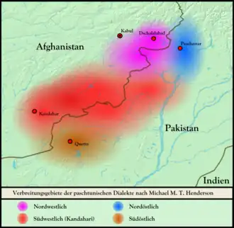 - ↑ Michael M. T. Henderson: Four Varieties of Pashto. In: Journal of the American Oriental Society. Vol. 103, No. 3, 1983, S. 595–597.
