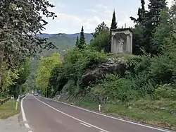 Etwas unterhalb der Passhöhe steht am südlichen Straßenrand auf einem Felsbrocken, einem Überbleibsel des eiszeitlichen Bergrutsches, eine Ädikula mit der Statue des Heiligen Johannes Nepomuk, nach dem der Pass benannt ist. Die 1738 errichtete Ädikula trägt an ihrer Basis eine lateinische Inschrift mit dem Jahr ihrer Aufstellung. Auf der Rückseite ist das Wappen der aus Nago stammenden Spenderfamilie angebracht, die das Bauwerk im Gedenken eines Verstorbenen errichten ließ. Im Ersten Weltkrieg wurde die Statue schwer beschädigt, so dass sie in den 1920er Jahren teilweise rekonstruiert werden musste. Sie wird dem Barockbildhauer Teodoro, Sohn des Cristoforo Benedetti, zugesprochen.[3][4]