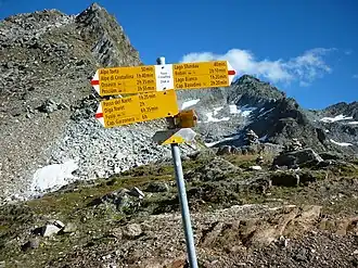 Der Passo di Cristallina (deutsch Cristallinapass) liegt in den Tessiner Alpen auf 2566 m ü. M. und verbindet das Bavonatal mit dem Bedrettotal im Schweizer Kanton Tessin.[1] Er ist ein wichtiger und oft begangener Übergang mit einem weiss-rot-weiss markierten Wanderweg vom Val Torta (Bedretto) nach Robièi (Bavonatal). 75 Meter nordwestlich des Sattelpunkts steht die Cristallinahütte der Sektion Tessin.[2] Sie ist Etappenort des Sentiero Cristallina.