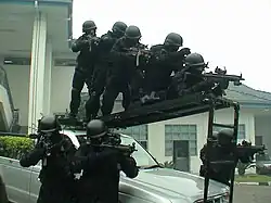 - ↑ ANDREW SIA: Guns, grit & guts. Counter-Terrorist Operations. Taking down armed robbers. Helicopter strikes. Protecting the Prime Minister. All in a day’s work for our police strike force, the UTK or Unit Tindakan Khas, Malaysia’s equivalent of the crack American SWAT Team. StarWeekend has a privileged peek into the action. In: The Star. 27. August 2005, archiviert vom ; abgerufen am 7. Juni 2023 (englisch).