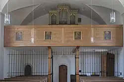 Auf der niedrigen Empore im hinteren Bereich der Kirche steht eine kleine Orgel, die 1850 von Franz Seraphim Koroschak gebaut worden war und 1980 aus Seebruck angekauft wurde. Sie wurde von Anton Staller hierher übertragen und 1986 durch Riegner & Friedrich restauriert. Sie verfügt über sechs Register auf einem Manual und Pedal. Die Disposition lautet:[4]