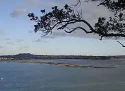Im Coyle Park in Auckland befindet sich ein von Tim Codyre 2009 geschnitzter Bogen,[29] der die Sage der Entstehung der Steinbrücke Te Tokaroa bildlich nachempfindet: Patupaiarehe lebten einst im Waldgebiet um Waitematā Harbour. Eines Nachts kämpften dort zwei Gruppen miteinander und die Kämpfer der schwächeren Gruppe versuchten, über das Meer zu entkommen, indem sie eine Steinbrücke bauten. Aber ehe sie fertig wurden, wurden sie von der aufgehenden Sonne überrascht und versteinerten im Licht.[30][31]