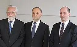 (von links): Anthony Cerami, David Wallach und Tim J. Schulz während der Pressekonferenz in Frankfurt am Main