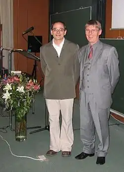 Paul Biran bei der Verleihung des Oberwolfach-Preises (links, mit Gert-Martin Greuel), 2004.