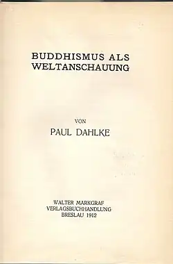 Schon zu Lebzeiten veröffentlichte Paul Dahlke neben 22 selbständigen Publikationen auch über 150 Aufsätze und mehr als 100 Rezensionen, die meisten davon in seinen beiden Zeitschriften, der „Neubuddhistischen Zeitschrift“ und der „Brockensammlung“. Weitere Werke erschienen im Verlag von Walter Markgraf. Die Rechte dieses Verlags gingen nach dem Krieg und dem Tod von Walter Markgraf an den Verlag des Buchhändlers und Verlegers buddhistischer Literatur Oskar Schloss über, den Oskar-Schloss-Verlag in Neubiberg. Im Vorwort seines Verlagskatalogs von 1924[2] bezeichnet Oskar Schloss seinen Verlag als denjenigen, „der jetzt der eigentliche Mittelpunkt der buddhistischen Literatur in den deutschsprechenden Ländern geworden ist.“.