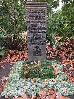 Paul Hauenschild ruht auf dem Friedhof Ohlsdorf. Die Grabstätte liegt im Planquadrat Y 22 nördlich der Waldstraße.
