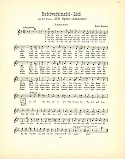 - Radelwadelmadel-Lied. (Wo es nette und adrette.) (Singstimme in: Die Spree-Amazone, um 1896)