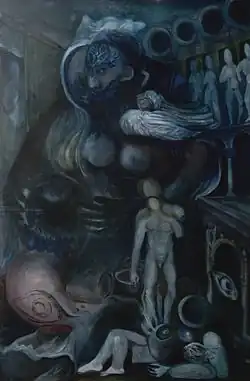In den um 1960 entstandenen Arbeiten ist der Übergang von der spätsurrealistischen Frühphase zum – weiterhin surrealistisch interpretierten – Manierismus Hockescher Prägung nachvollziehbar. Das 1959 entstandene Gemälde Furore mit seinen requisitenhaften Details und einer an Picassos Guernica geschulten Komposition lässt die Schrecken des Krieges ohne realistische Anleihen als Schrecken der Psyche erstehen.
