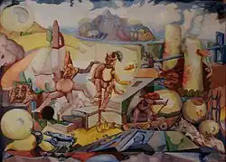 - 1960 – Römischer Traum. In memoriam Francesco Borromini, Öl auf Sperrholz, 120 × 100 cm